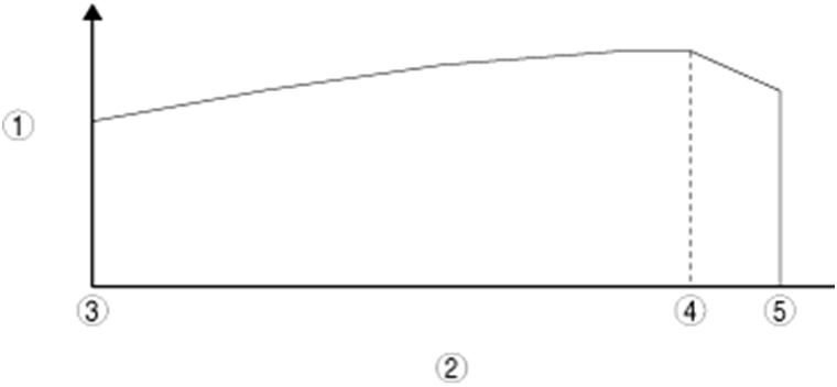 • Как показано на следующем графике, усилитель оповещений и предупреждений изменяет силу звукового сигнала в зависимости от скорости транспортного средства. 1. Звуковой уровень приближающегося транспортного средст