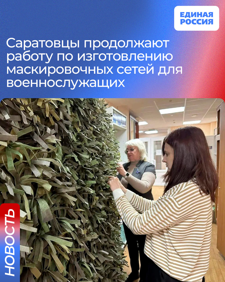 🙏🏻Саратовцы продолжают работу по изготовлению маскировочных сетей для военнослужащих
