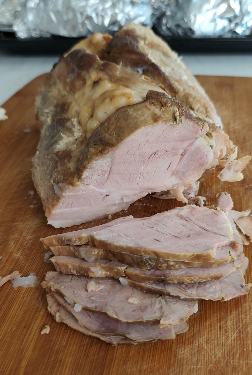 Меня часто спрашивают, где я беру рецепты. Некоторые достались от мамы и бабушки, какие-то освоила, когда работала поваром, часть беру из книг, есть даже любимые рецепты от подписчиков. У меня большая коллекция книг, часть из них настоящий раритет. Несмотря на внушительный возраст, книги абсолютно "рабочие", единственная трудность, перевести старинные меры веса, в современные. Этот рецепт из книги "Образцовая кухня" П.Ф.Симоненко 1906 года. У меня еще есть книга Елены Молоховец 1903 года издания. Рецептов там очень много, так что осваивать можно еще долго. Этот рецепт меня покорил своей абсолютной простотой, но понадобится время. То есть ничего сложного, только сутки уйдут на маринование, потом надо запечь, остудить, а дальше нарезайте и на стол. С точки зрения экономии, тут очевидная выгода, поскольку буженина стоит дорого, а окорок можно купить с хорошей скидкой. Я брала в Перекрестке, там постоянно акции на свинину. Я часть вакуумировала и заморозила, поскольку сделала много и сни