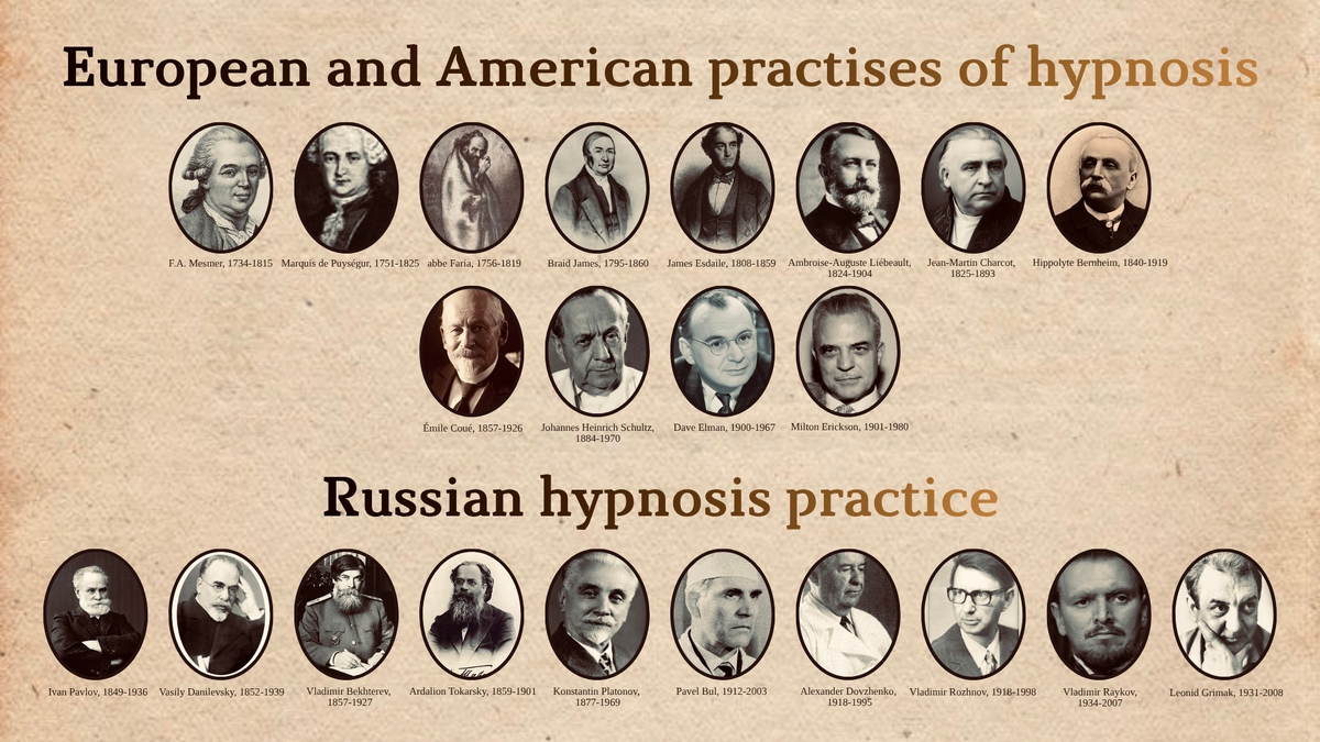 Наша отечественная школа гипноза - Бехтерев, Платонов, Довженко, Евтушенко... Все были врачами. Гипноз изучали в институтах в советское время. Кодировки входили в перечень рекомендованных мед услуг.