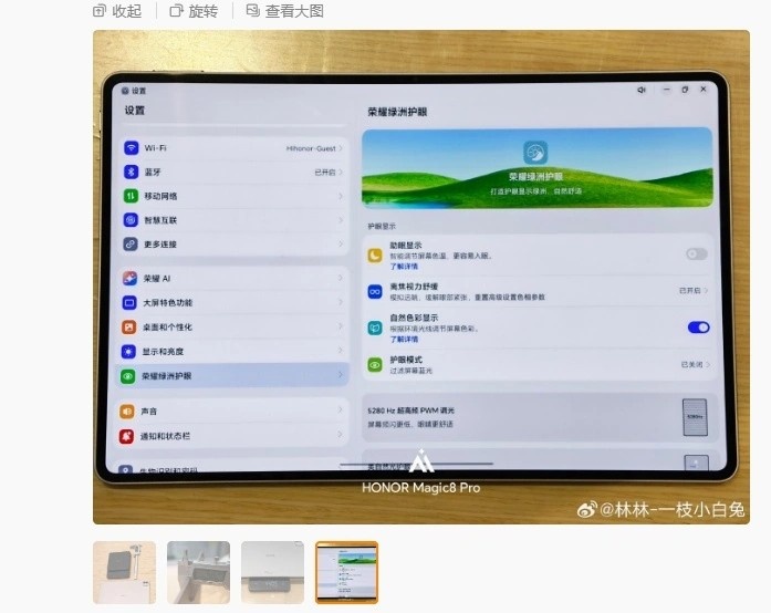 9 апреля в сети всплыли первые подробности о новом планшете Honor, который в компании уже окрестили «эстетическим флагманом». Речь идет о MagicPad 3 Pro 12.3, который впервые показал Линь Линь, руководитель направления умной жизни Honor в Китае. Делать ставку решили не на рекорды производительности, а на внешний вид и ощущения: корпус предельно тонкий и легкий, а спереди установлен 12,3-дюймовый OLED-дисплей с ультратонкими рамками. Читать на сайте: Honor MagicPad 3 Pro 12.3 впервые показали: 4,82 мм и OLED 12,3″ Если MagicPad 3 Pro 13.3 принято считать главным «силовым» флагманом линейки, то версия 12.3, как оказалось, должна играть роль самой изящной модели. На опубликованных изображениях видно исполнение в цвете «космический серый», а сзади размещен матричный модуль камер, дополненный вспышкой в форме кольца. Толщина заявлена на уровне примерно 4,82 мм, масса около 440,5 г. Отдельно упоминается сверхвысокочастотное ШИМ-регулирование яркости 5280 Гц и контактные площадки на крышке, в