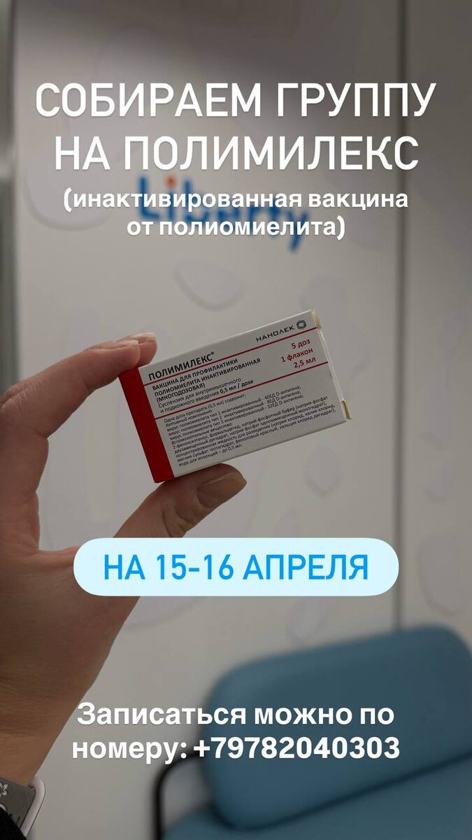 Собираем группу на Полимилекс (инактивированная вакцина от полиомиелита) 💉