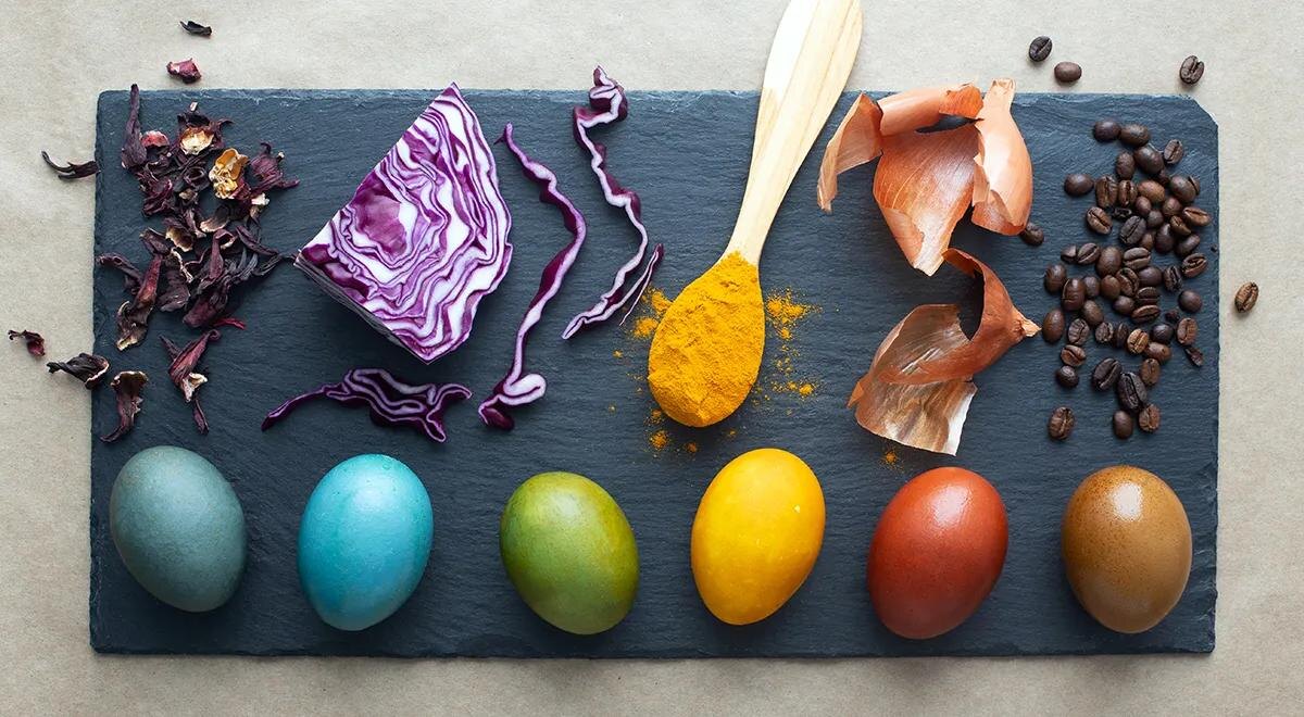 если приложить к яйцу листик петрушки и обернуть марлей — получится красивый рисунок. Идеально, если хочется нежных, «инстаграмных» оттенков. Что нужно: Как делать: Сварите яйца и оставьте их в горячем напитке на 1–3 часа. Чем дольше — тем насыщеннее цвет. Да, звучит странно — но получается красивый голубой или синий оттенок. Что нужно: Как делать: Капусту нарежьте, залейте