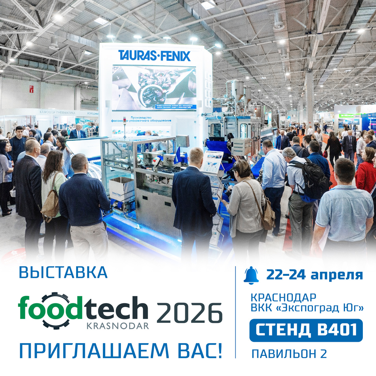 📍 Краснодар, ВКК «Экспоград Юг» Компания ТАУРАС-ФЕНИКС покажет свои решения на выставке FoodTech Krasnodar 2026 (стенд B401). Сегодня большинство предприятий сталкиваются с одними и теми же вопросами: — как увеличить производительность без расширения штата