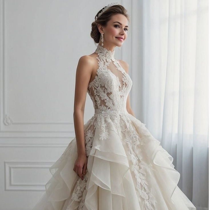 Лёгкое, воздушное, но с элементами мистики, которые так любила Даша. Ткань: нежный шёлк цвета слоновой кости, который словно светился изнутри. Корсет: украшен тонкой вышивкой серебряной нитью — узоры напоминали древние руны защиты, которые Даша когда-то изучала с Джакартом. Юбка: многослойная, с лёгким шлейфом, который при движении казался струящимся туманом.