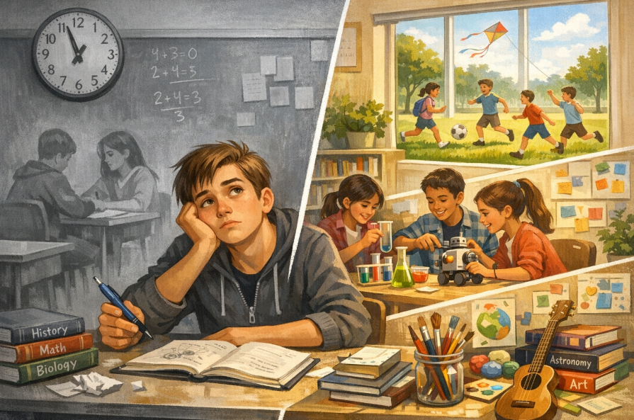 Почему в школе скучно — вопрос, который волнует многих учеников и родителей. Скучно на уроке бывает по разным причинам, и важно понять, что именно вызывает потерю интереса к обучению. Ребенку скучно в школе не потому, что он ленивый или не хочет учиться — часто дело в формате подачи материала, отсутствии вовлечения или несоответствии темпа обучения потребностям ученика.
