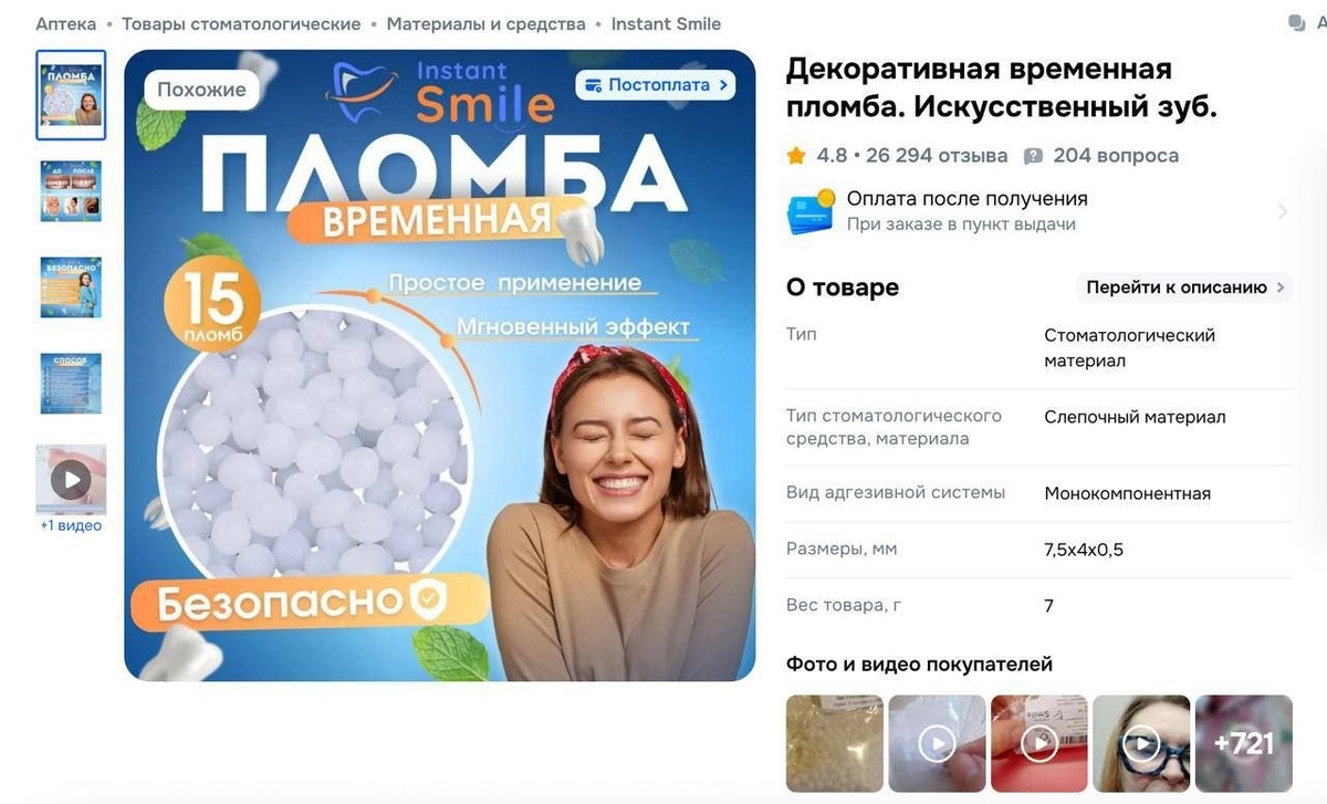 По данным исследования First Data, в первом квартале 2026 года продажи товаров для самостоятельного лечения зубов на маркетплейсах выросли на 63% по сравнению с тем же периодом прошлого года. За три месяца россияне сделали более 150 тысяч таких покупок на сумму свыше 39 млн рублей; чаще всего брали временные пломбы, накладные виниры и «брекеты/каппы». Основными покупателями были женщины, а самая активная возрастная группа — 35–45 лет. 💬 Стоматологи предупреждают: закрывать больной зуб «пломбой с маркетплейса» — плохая идея. Врач Алексей Антипенко отмечает, что под видимой «дыркой» может скрываться кариес, хронический пульпит или периодонтит, и герметичное закрытие такой полости может привести к гнойному воспалению, абсцессу и в тяжёлых случаях — к сепсису. 🧠 При этом есть важный нюанс: если откололся кусочек зуба и он режет язык, временно закрыть острый край допустимо, но только как короткую меру до визита к врачу. Это не лечение, а экстренная помощь на несколько часов. 💡 Вывод п