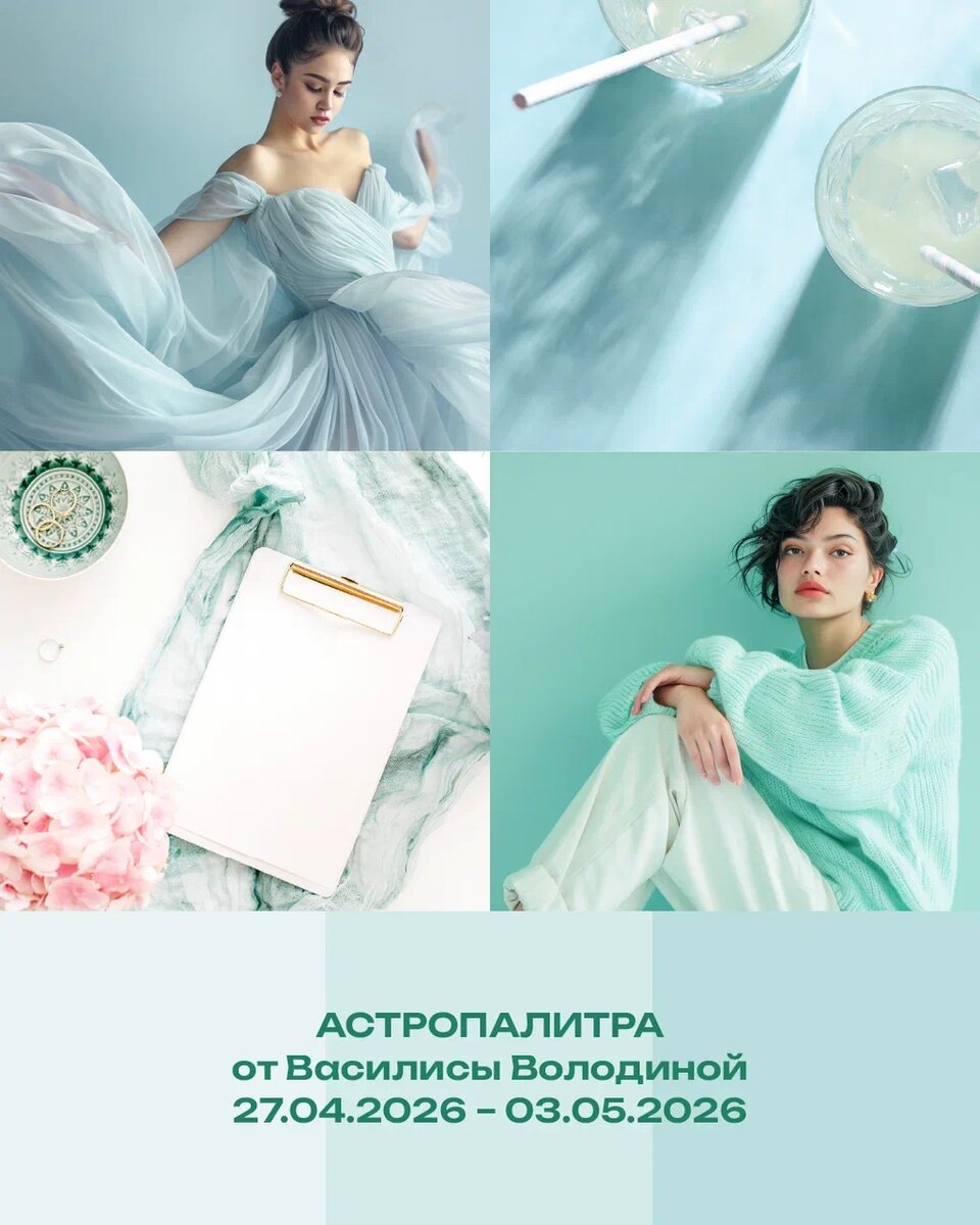 Везучие цвета будущей недели: небесно-голубой, светлая лазурь, льдисто-голубой — Венера в Близнецах дарит лёгкость, молодость и (кстати!) слова обретают почти магическую силу!
