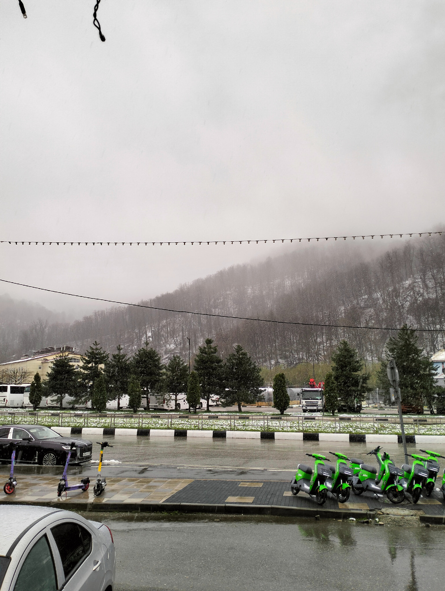 Сегодня я нахожусь в районе Эсто-Садка, и природа преподнесла нам настоящий сюрприз. За окном — 9 апреля, календарная весна уже вовсю вступает в свои права внизу, в долинах, а в горах сегодня настоящее белое покрывало.