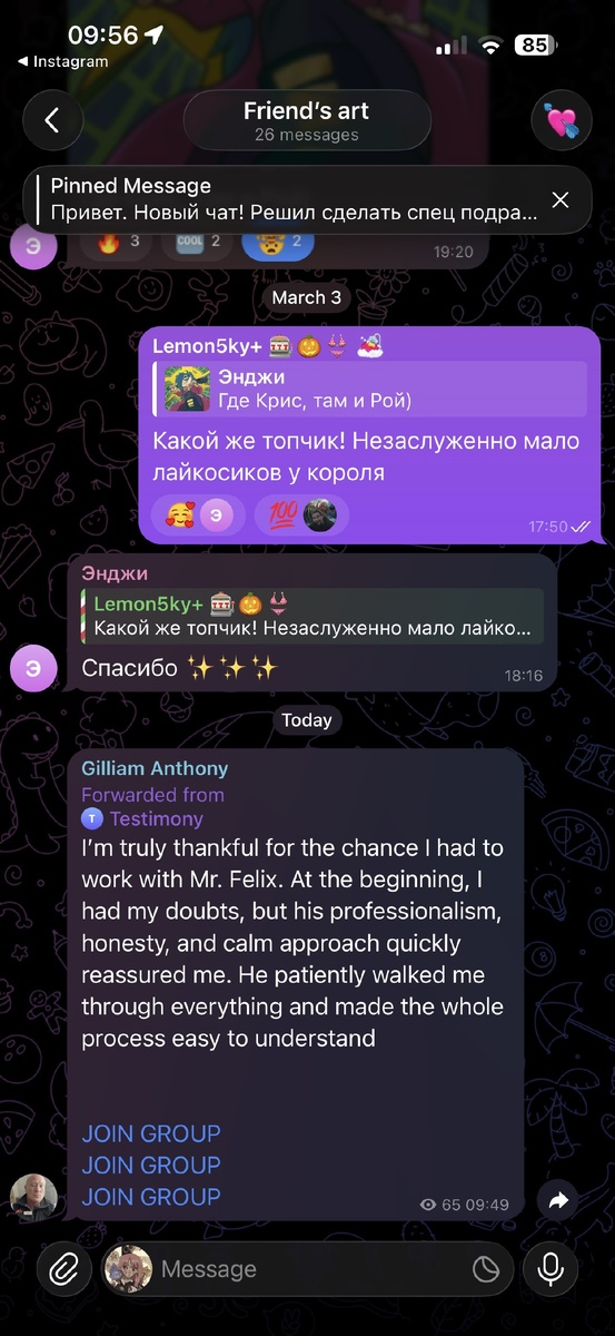 У меня в паблосе первый спам 🫶 Примерно так себе и представлял быть успешным 😎 Кстати, тоже подписывайтесь на арт паблик. Там только картинки: https://t.me/lemon5kyAmazing