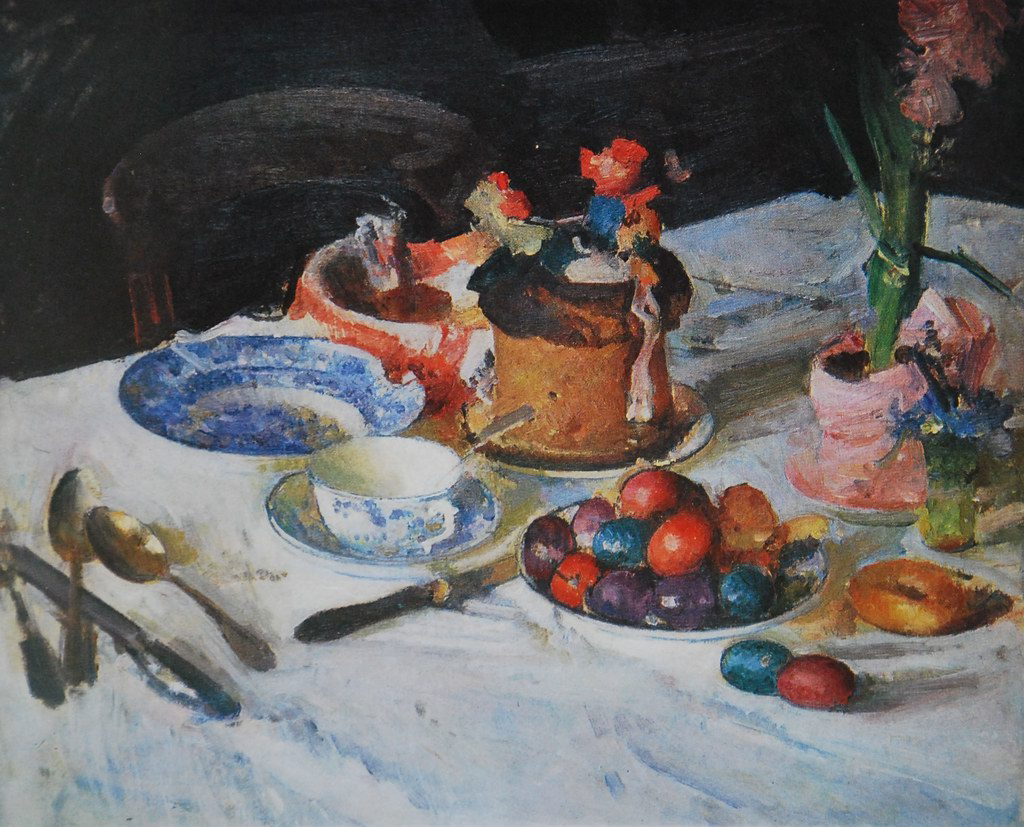 Наш стол отличался не только обилием, но и разнообразием, потому что помимо традиционных куличей каждому готовилось его любимое: так, например, мне всегда отдельный сотейник макарон; Мама́ и Семён особенно строго наблюдали, чтобы мне были приготовлены папиросы, курение которых постом я обыкновенно избегал...