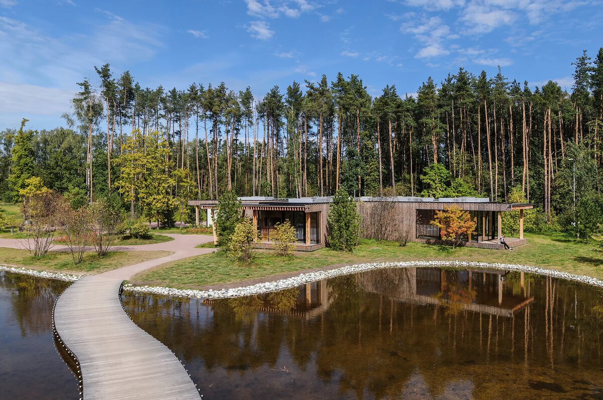Компания «Норвекс» представляет вашему вниманию офисное здание в парке «Мещерский». Концепция основана на сложном объёме, в котором несколько функциональных «лепестков» соединяются вокруг центрального ядра с ресепшн. Каждый «лепесток» служит отдельной задачей: здесь расположены open-space, переговорная, кухня с зоной отдыха, кабинеты руководителей и технические помещения. Такой подход позволил команде «Норвекс» создать продуманную и удобную для работы среду, органично вписанную в природный ландшафт. «Мы изначально ставили задачу максимально учитывать особенности площадки и проектировать структуру по принципу гибкости, — отмечает представитель компании „Норвекс“. — Благодаря клееному брусу из ели и современным стеклянным решениям здание получилось технологичным и экологичным одновременно. А фундамент на металлических винтовых сваях позволил быстро развернуть строительство без ущерба для окружающей среды. В процессе реализации площади здания пришлось почти удвоить — команда оперативно по