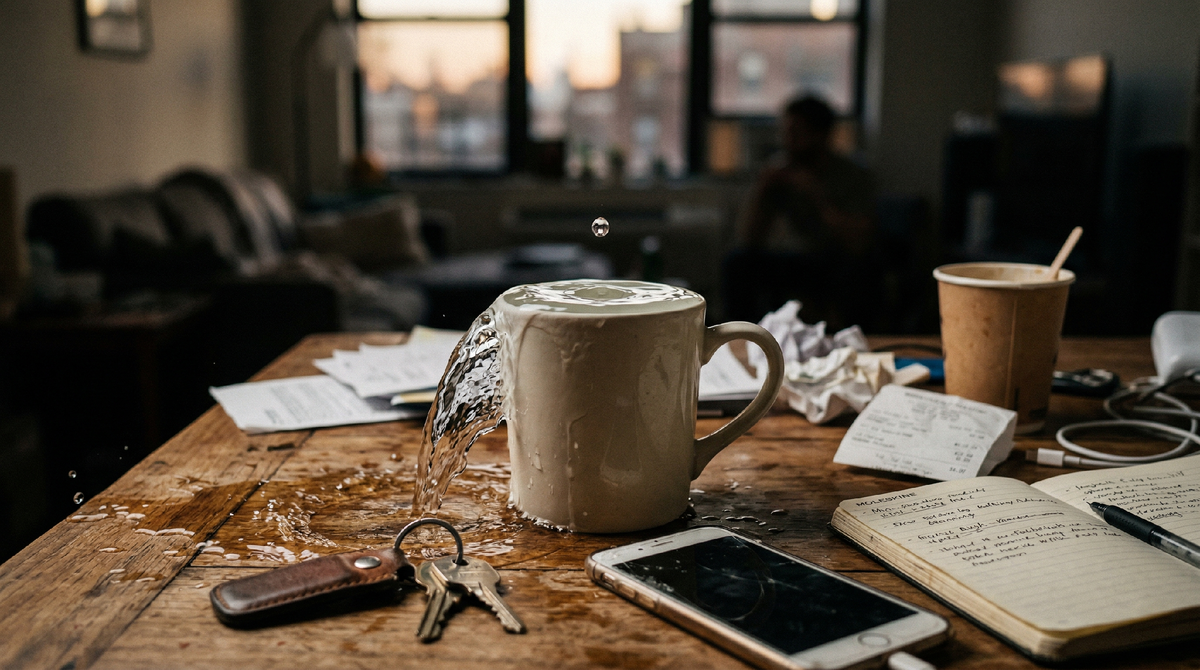 Это как если бы у вас была чашка, наполненная почти до краёв. Одна лишняя капля — и вода переливается. Проблема не в капле. Проблема в том, что ёмкость уже была переполнена.