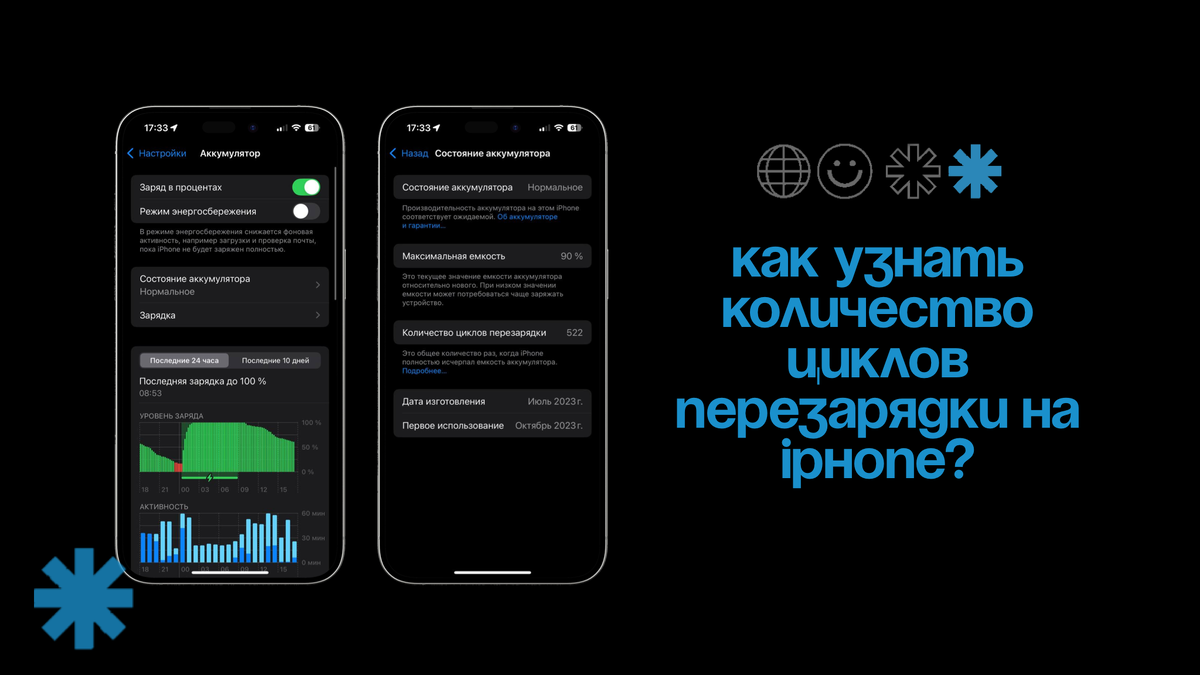 Стоит отметить тот факт, что 1 цикл – это сумма зарядов аккумулятора, которая составила 100%. Аккумуляторы iPhone 14 и старше рассчитаны на сохранение 80% емкости после 500 циклов, а iPhone 15 и 16 — после 1000 циклов.
