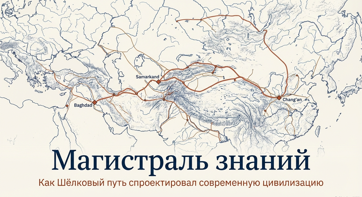 Великий Шелковый путь в массовом сознании часто предстает лишь как бесконечная вереница караванов, нагруженных тюками дорогой ткани и пряностями. Однако за этим экзотическим фасадом скрывалась самая мощная интеллектуальная артерия древности. Это была «магистраль знаний», по которой со скоростью верблюжьего шага перемещались идеи, навсегда изменившие облик человечества. Именно здесь происходил великий синтез Востока и Запада, превративший разрозненные очаги культур в единую научную экосистему.