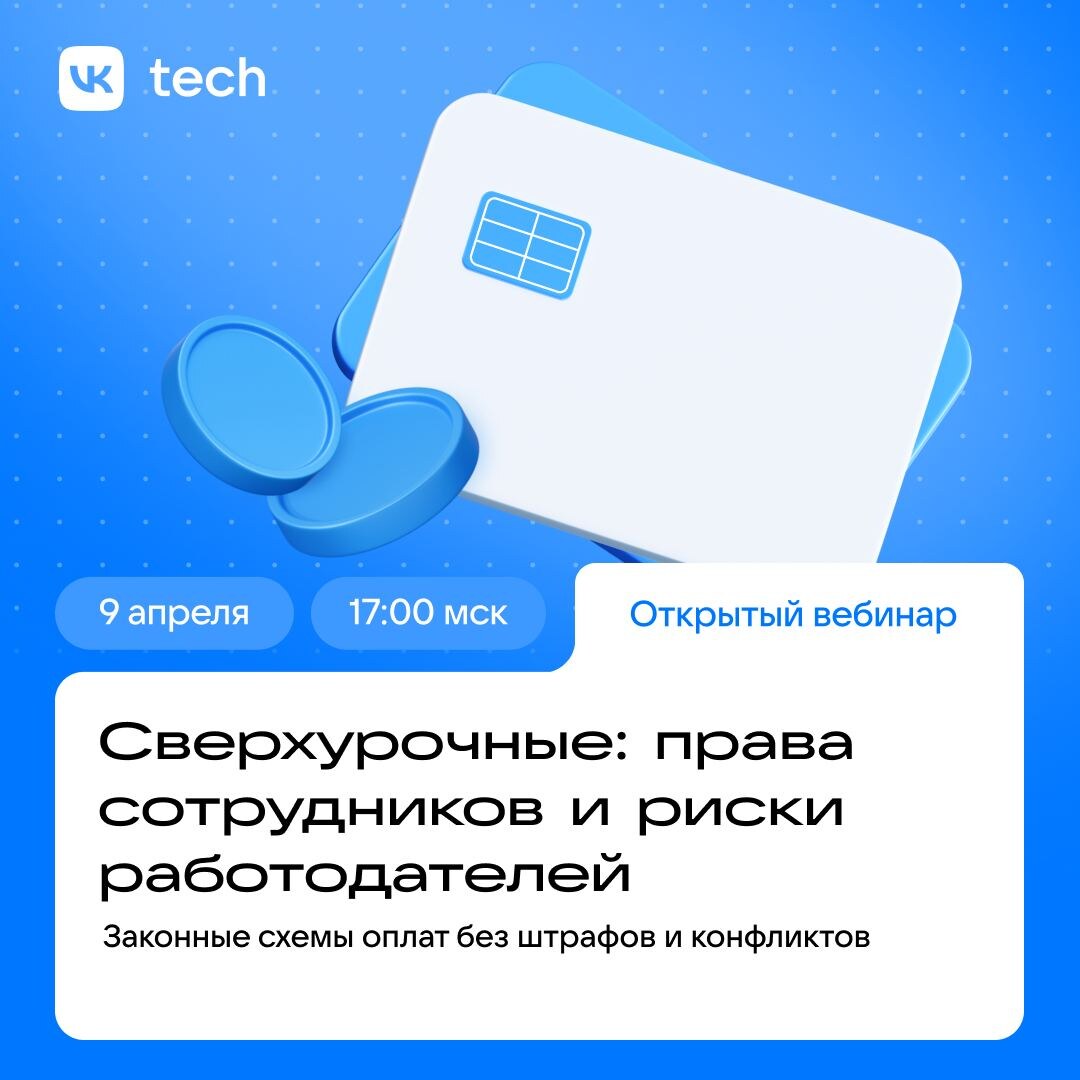! 9 апреля в 17:00 по Москве обсудим, как грамотно привлечь сотрудников к сверхурочной и ненормированной работе, подготовить документы и организовать выплаты в соответствии с ТК РФ. 🔹 Регистрация здесь. В программе: 💎 Сверхурочная работа: максимальная продолжительность, условия оплаты и обязанности работодателя 💎 Стандартный режим работы и вахтовый метод: подводные камни учета рабочего времени 💎 Ненормированный рабочий день: продолжительность, условия, формы компенсаций и обязанности работодателя 🔹 Спикер — директор по работе с госсектором VK Tech Максим Семенов. Чтобы участвовать в вебинаре, зарегистрируйтесь прямо сейчас на сайте мероприятия.