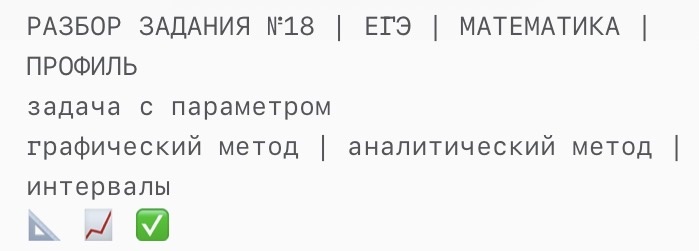 Задание №18 в профильном ЕГЭ по математике — это задача с параметром. Нужно найти все значения параметра, при которых уравнение или неравенство имеет определенное количество корней, или выполняется некоторое условие.