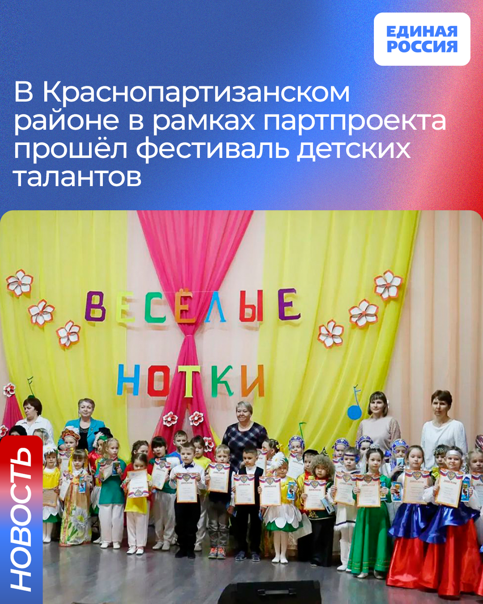 🤗В Краснопартизанском районе состоялся Межмуниципальный фестиваль детских талантов «Веселые нотки». Его участники - воспитанники детских садов Краснопартизанского района и п. Михайловский.