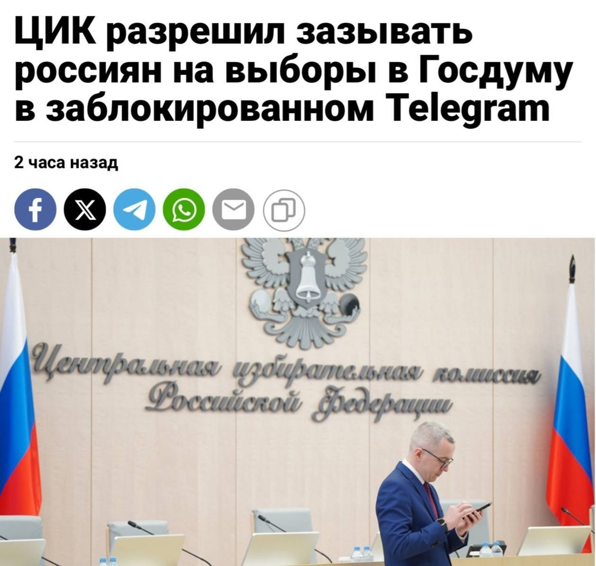 ЦИК разрешил зазывать россиян на выборы в Госдуму через Telegram, пишут СМИ