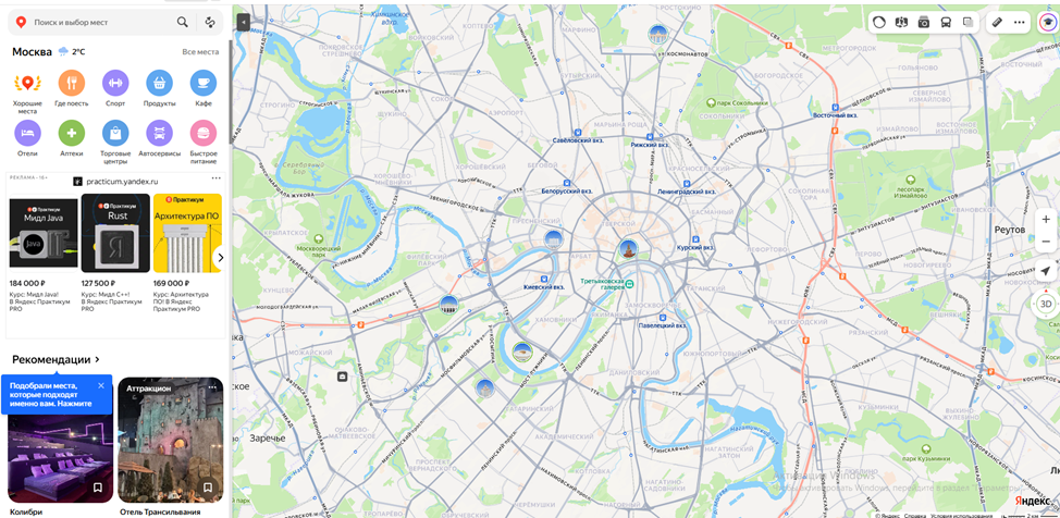 Яндекс.Карты — навигационный сервис с детальными картами городов, пробками в реальном времени, общественным транспортом и панорамами улиц. Включает поиск организаций, отзывы, бронирование столиков и заказ услуг. Офлайн-карты позволяют использовать навигацию без интернета. По охвату и актуальности данных в России превосходит Google Maps, особенно в регионах. Уникальные технологии Яндекса: 1. Компьютерное зрение — автоматическое распознавание объектов на картах, чтение адресов и номеров домов 2. Машинное обучение — прогнозирование пробок, персонализированные рекомендации мест 3. Crowdsourcing — сбор данных от миллионов пользователей для актуализации информации 4. Собственная картография — создание карт с нуля, а не использование сторонних данных Яндекс.Карты представляют собой зрелую картографическую платформу, превосходящую международные аналоги в детализации и актуальности данных по России и СНГ. Глубокая интеграция с другими сервисами экосистемы Яндекса (Такси, Еда, Услуги, Афиша) соз