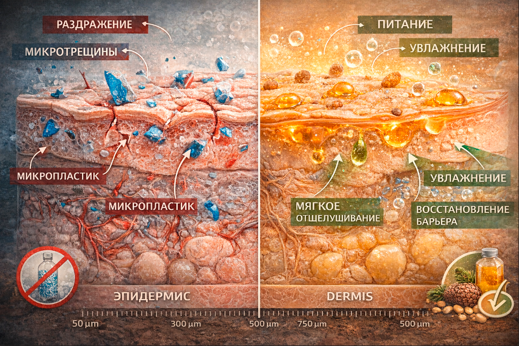 Синтетические шампуни и гели не проиграли «вдруг». Они проигрывали постепенно — из-за мутных составов, бесполезных обещаний и вреда для природы. На их место пришла честная банная косметика.