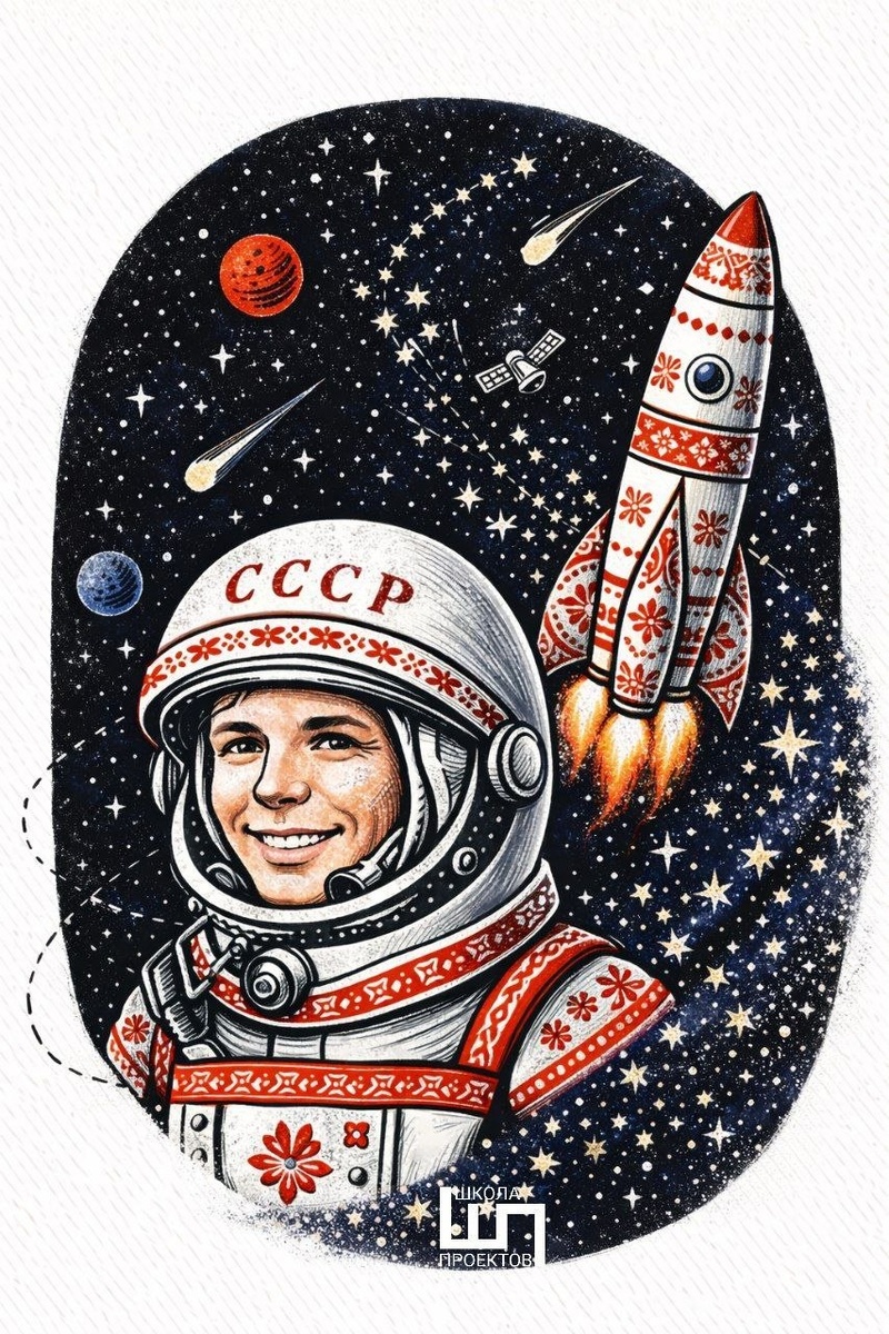 Уже совсем скоро 12 апреля — День космонавтики. В этом году особенная дата — 65 лет со дня полёта Юрий Гагарин в космос. Того самого полёта, после которого весь мир услышал легендарное: «Поехали!» 🚀 Поэтому я подготовила для вас поздравительные космические карточки в сказочном русском стиле. Пусть космос в этом году станет ещё и поводом для новых ученических проектов🌌 Забирайте карточки и делитесь с коллегами и детьми! Спасибо -❤ Это космос-🔥 @shkolaproektov #ШколаПРОЕКТОВ #Смотривверх 🚀