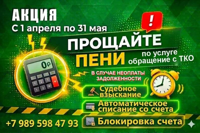 ООО «МСК-НТ» проводит акцию «Прощайте пени» призванную помочь решить проблему задолженности населения по оплате коммунальной услуги «обращение с ТКО». В рамках акции, лица, имеющие задолженность, смогут погасить долг без начисления пеней. Срок действия акции с 1 апреля по 31 мая 2026 года. Чтобы оплатить задолженность, перейдите по ссылке на официальном сайте МСК-НТ mskobl.msk-nt.ru/oplata-dlj... , наведите камеру телефона на QR код. В открывшейся странице введите номер лицевого счета. Также, вы можете оплатить услугу через Сбербанк по ссылке mskobl.msk-nt.ru/oplatit-tk... . Воспользовавшись акцией, у вас будет возможность погасить задолженность, и автоматически обнулить начисленные пени. Почему стоит оплатить долг? В случае неоплаты и просрочки платежей, компания автоматически передает сумму задолженности для взыскания в суд. По сложившейся практике суд взыскивает не только сумму долга и пени. В платеж также добавится сумма штрафа, судебные издержки и сопутствующие исполнительному п