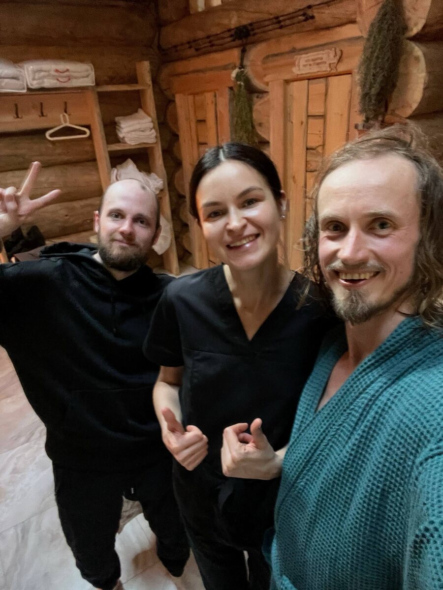 ! Второй раз в этой бане. Собиралась мужская компания ~10 человек. Большинство хотели париться, поэтому мы поехали целой делегацией. В подмогу я взял главного пармастера Анатолия. Он предложил парить всех вдвоём, подменивая друг друга. Так мы провели 12 парений! Я не знаю, что делал бы без него. Помог всё вытянуть! Так же у компании был запрос на массаж и я пригласил давнюю подругу Тому. Вы могли её видеть в ролике с 14 февраля. Тома очаровала всех не только собой, но ещё и массажем. После трёх часовых сеансов на массаж захотели почти все, поэтому пришлось ускоряться! Тома сделала ещё 3 получасовых массажа и даже мне пришлось подключаться. Мы оба начинали заниматься массажем примерно 12 лет назад, но я ушел в сферу съемки видео, а Тома так и продолжила. Единственным моим клиентом по массажу за последнее время была жена, а теперь буду включать оздоровительный массаж в свое спа меню, наряду с парениями. Сделал часовой массаж и гость тоже остался в восторге. Все благодарили, х