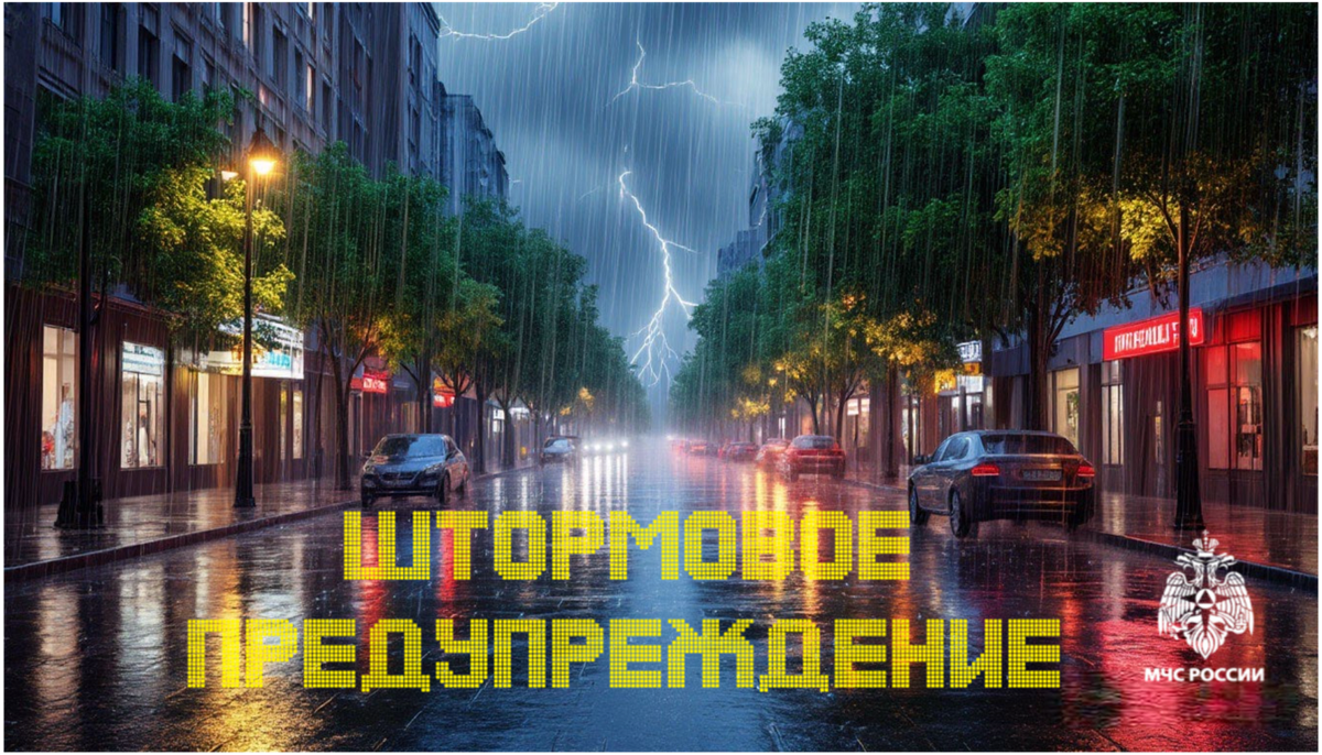 ожидается сильный дождь, ливень в сочетании с грозой, градом и сильным ветром 20 - 25 м/с.