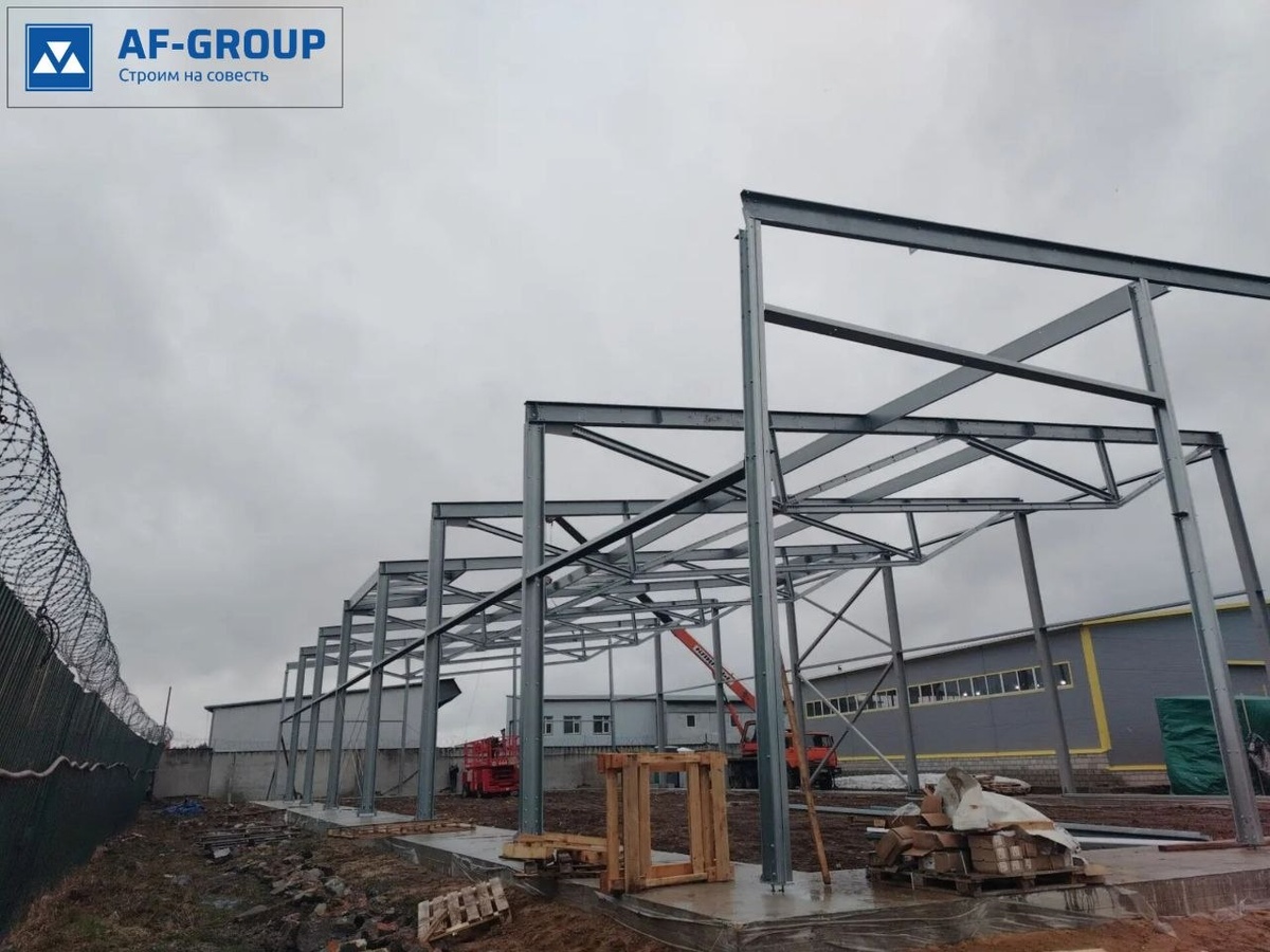 Каркас здания размерами 18х42х6 метров в Московской области в процессе монтажа