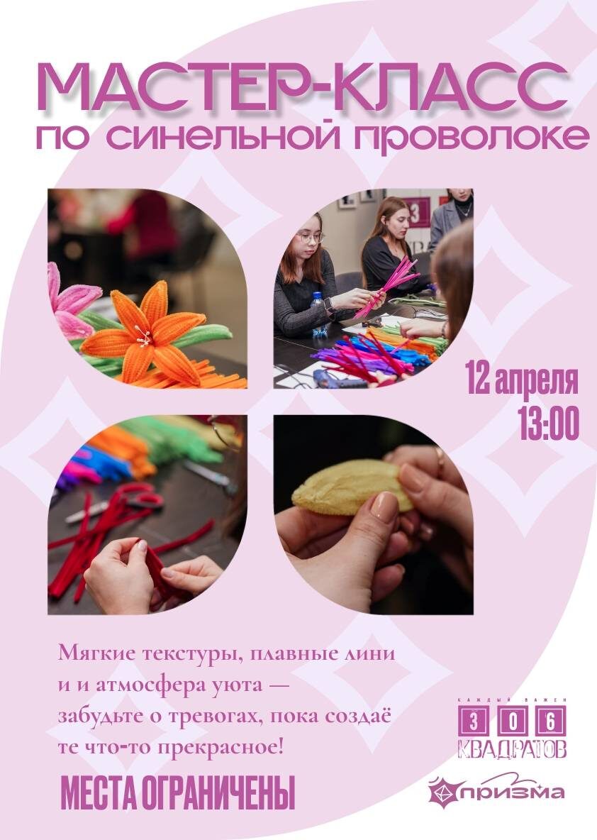 Приглашаем на творческий мастер-класс по работе с синельной проволокой. Участники создадут объёмные цветы в уютной атмосфере, отвлекутся от суеты и заберут поделку домой. Мероприятие подходит для новичков. Начало: 12 апреля 2026 13:00 Стоимость: Бесплатно Адрес: г Омск, ул Красный Путь, д 11 Организатор: https://vk.com/public185419812 ✨ Приглашаем на мастер‑класс по работе с синельной проволокой! ✨ Хотите ненадолго отвлечься от суеты и погрузиться в атмосферу творчества и уюта? Приходите к нам в «306 квадратов» — будем создавать очаровательные объёмные цветы из пушистой синельной проволоки! Что вас ждёт: приятные тактильные ощущения и расслабляющий процесс; простые техники, доступные даже новичкам; готовая поделка, которую можно забрать... #ремесло_флористика Узнать подробности, адрес или записаться на событие.
