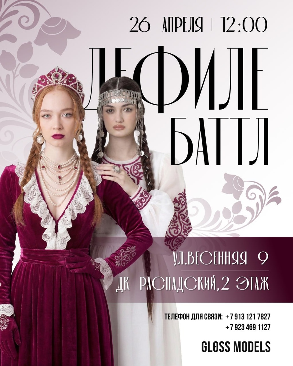МЕЖДУРЕЧЕНСК. ПОДИУМ. 🔥 Готов к громкому событию этой весны? Gloss Models представляет: ДЕФИЛЕ-БАТТЛ 2026! 🏆 Это будет жарко: 🔹 Модели из разных городов. 🔹 Профессиональное жюри и море подарков от партнеров. 🔹 Интерактивы, крутая фотозона и вайб большого города. Неважно, в нашей ты студии или нет — это мероприятие для ВСЕХ, кто любит драйв и моду. 📍 Где: ДК «Распадский», 2 этаж 🕛 Когда: 26 апреля в 12:00 Места ограничены! Пиши в сообщения «БАТТЛ», чтобы занять свое место в зале или на подиуме! 👇 +7 (923) 469-11-27 Рекламодатель Беднова А Г Токен 2VtzqxjuK6N
