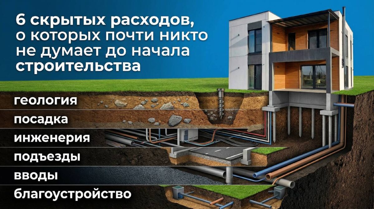 Геология, посадка дома, инженерия, подъезды, вводы, благоустройство — все это не дополнительные капризы, а реальные части процесса, без которых дом не работает как полноценная система.