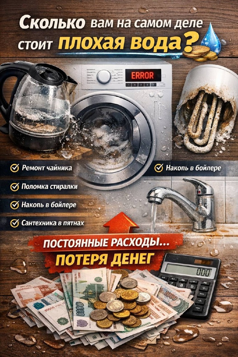 ? Кажется, что вода из крана — это «бесплатно». Но давайте посчитаем, что происходит на самом деле: — чайник умирает за 6–12 месяцев — стиральная машина начинает шуметь и ломаться — бойлер зарастает накипью — сантехника теряет вид — фильтры «из супермаркета» меняются бесконечно И в итоге — постоянные мелкие расходы, которые незаметно превращаются в крупные. ⸻ 📉 Плохая вода = постоянные траты Вы просто к ним привыкаете и перестаёте замечать. Но если сложить всё за год… сумма уже совсем не маленькая. ⸻ 💡 Система очистки — это момент, когда расходы превращаются в экономию ✔️ техника служит дольше ✔️ меньше ремонтов ✔️ нет накипи ✔️ меньше бытовой химии ✔️ стабильное качество воды каждый день ⸻ 📌 И самое важное: правильная система ставится один раз — и начинает окупаться уже в первый год. ⸻ 💬 А вы когда-нибудь считали, сколько тратите из-за воды? 📞 Телефон: 8 (812) 628-04-44 🌐 Сайт: starwater.ru ✉️ Почта: info@starwater.ru