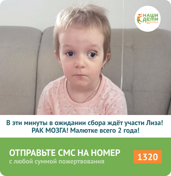 ПОМОЧЬ ЛИЗЕ ПО ССЫЛКЕ > Здравствуйте, дорогие помощники! Представьте 2-летнего ребёнка, который зажмуривает один глазик, чтобы хоть что-то разглядеть другим. Который боится подняться по лесенке, потому что мир перед ним расплывается. И при этом продолжает улыбаться, тянуться к людям, хватаясь за каждое прожитое мгновение. Наша малышка Лиза именно такая. У неё РАК мозга. Опухоль сдавила глазной нерв, и левый глаз видит лишь на 20%. Но девочка не сдаётся. Она вытерпела уже 15 недель интенсивного курса химии. МРТ показала результат, от которого надежда в сердце её мамы окрепла ещё больше: опухоль уменьшилась на 4 мм, стала более рыхлой, перестала сильно давить на нерв. Глазик начал двигаться с большей амплитудой. Это маленькая, но настоящая победа. Это верный курс! Но есть другая беда, о которой мама говорит тише: денег на следующий курс нет. В ближайшие дни Лизе необходим новый 12-недельный этап терапии. Если лечение остановится, все 15 недель, вся боль, все надежды окажутся зря. И Лиза