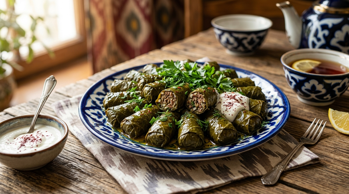 Есть блюда, которые просто утоляют голод… а есть те, которые запоминаются на всю жизнь. Долма — именно такое блюдо. Её невозможно спутать ни с чем другим: нежные виноградные листья, сочная мясная начинка, аромат специй… Всё это соединяется в идеальную гармонию вкуса. Уже при одном виде тарелки с долмой просыпается аппетит, а запах заставляет забыть обо всём вокруг. В Узбекистане долма — это не просто еда. Это часть традиций, семейных встреч и теплых вечеров. Её готовят для гостей, на праздники и просто тогда, когда хочется чего-то по-настоящему домашнего и вкусного. Интересно, что у каждой хозяйки есть свой секрет приготовления долмы. Кто-то добавляет больше зелени, кто-то делает начинку сочнее, а кто-то готовит её на медленном огне, чтобы вкус стал максимально насыщенным. Но одно остаётся неизменным — настоящая долма всегда получается невероятно вкусной 😍 Чтобы приготовить идеальную долму, не нужны сложные продукты. Всё достаточно просто, но важно выбрать свежие и качественные ингред