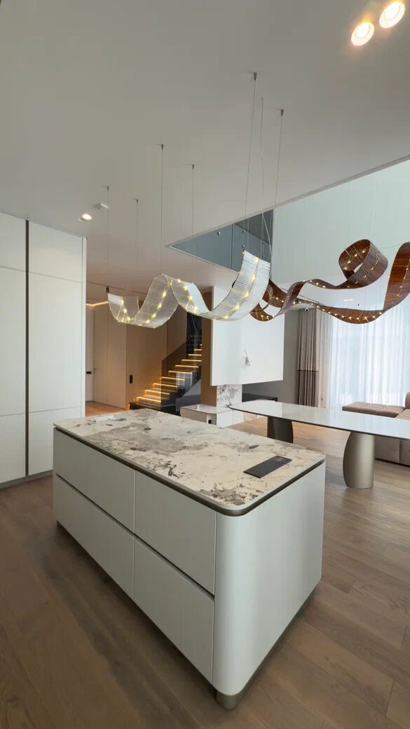 Этот дом площадью 400 м² находится в коттеджном посёлке «Европа» в городе Казань. Это закрытый посёлок с хорошей инфраструктурой: охрана, видеонаблюдение, благоустроенные улицы, освещение и удобная транспортная доступность 🚗 Такие локации ценятся за тишину, безопасность и комфорт — здесь живут семьями и надолго. Когда мы зашли на объект, это была просто бетонная коробка от застройщика. Без инженерии и отделки. Всё делали с нуля 🛠 Начали с самого важного — инженерии: Отдельно предусмотрели серверную, щиты (силовой и слаботочный), видеонаблюдение — всё управление домом в одном месте. Дальше — отделка: Тёплый пол — по всему дому 🔥 На первом этаже: Есть гараж на 3 машины с инженерным узлом 🚗 На втором этаже: Интерьер получился современный: скрытые двери, окрашенные стены, много света и подсветки 😎 Отдельная фишка — лестница с подсветкой, которая включается при движении 🔥 Также в доме есть SPA-зона: Всё продумано до мелочей, включая вентиляцию и фильтрацию воздуха. 💸 По стоимости: ра