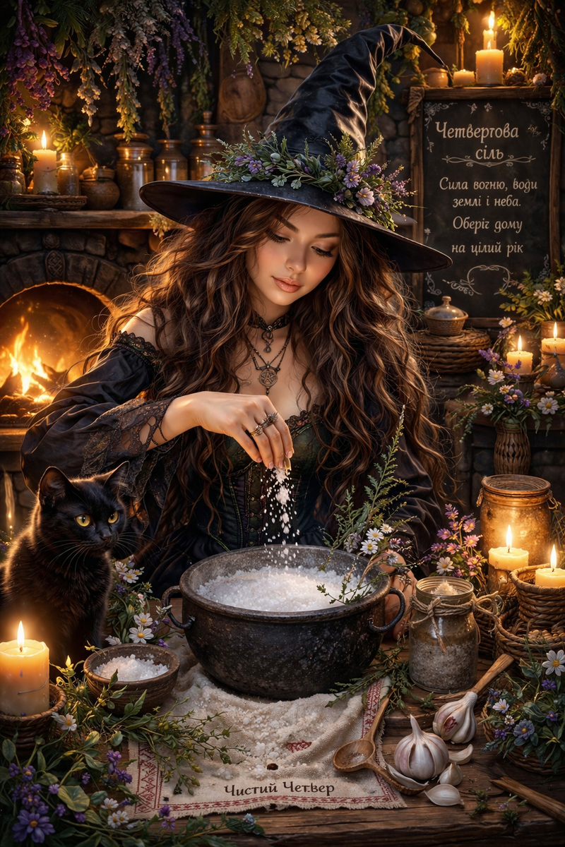 Знаю. И всё равно пишу — потому что четверговая соль не терпит молчания. Потому что каждый год я собираюсь написать об этом заранее, и каждый год что-то случается — то одно, то другое, то просто сижу ночью и держу соль в руках и забываю о словах. А потом четверг уходит, и я думаю: напишу в следующем году.
