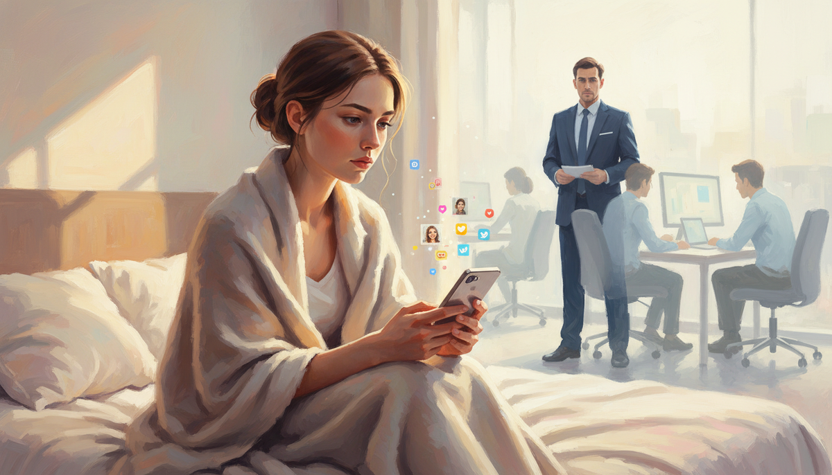 Она выложила фото с дня рождения подруги в субботу вечером. В понедельник утром — ещё лежала с температурой. А в среду её вызвали к руководителю. Не за прогул. За инстаграм. Эта история — уже не редкость. И она вскрывает кое-что важное: мы живём в эпоху, когда граница между личной жизнью и рабочей репутацией стёрлась настолько, что один сторис может переписать всё. Больничный лист — это юридический документ. Он говорит одно: человек нетрудоспособен. Не прикован к кровати. Не в коме. Не обязан лежать без движения с градусником под мышкой, пока вся страна наблюдает. Нетрудоспособен — значит, не может выполнять свои рабочие обязанности. Это медицинский факт, а не моральный приговор. Но логика коллег и работодателей часто работает иначе. «Если ты вышел на улицу — значит, мог прийти на работу». Эта фраза звучит в офисах с завидной регулярностью. Она кажется здравой, но она в корне неверна. Человек с бронхитом может дойти до аптеки или врача — и при этом физически не способен сидеть восемь ч