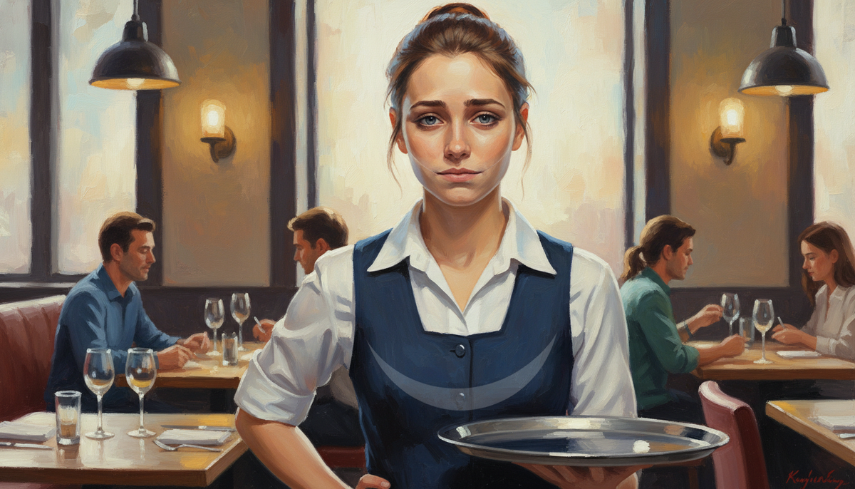 Официант, который восемь лет улыбается по требованию без нормальной оплаты и без права на усталость — это не счастливый человек с призванием. Это человек, который научился очень хорошо притворяться.