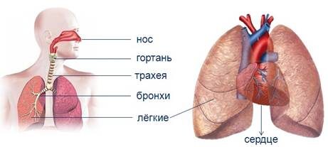 Какие органы составляют дыхательную систему? (Носовая полость, гортань, трахея, бронхи, лёгкие.)