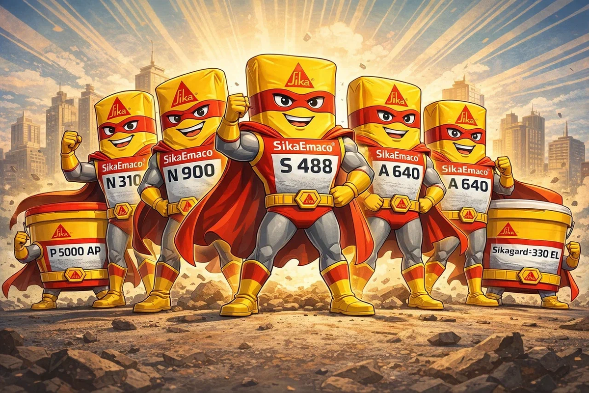 В этой статье мы разберем, как правильно применять ремонтные смеси SikaEmaco N 900, SikaEmaco P 5000 AP, SikaEmaco S 488, SikaEmaco A 640 и защитное покрытие Sikagard 330 EL на различных этапах восстановления ЖБК.
