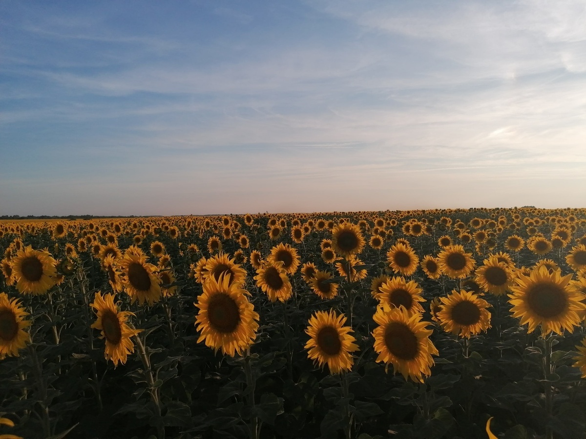 А как красиво когда эти подсолнухи по обеим сторонам дороги и простираются далеко - далеко. Сколько глаз видит. А в воздухе просто висит густой , медовый аромат.