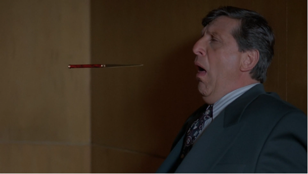 Эпизод 1Х05 «Тени» (Shadows) Монстр недели Оценка 6 из 10 Где-то в кабинетах телеканала Fox нашлись оригиналы, которым страсть как захотелось запихнуть в «Секретные материалы» полтергейста, ибо это же такой традиционный сюжет для жанра ужасов! Одноимённая франшиза, возникшая в 1980-е, было дело, радовала ограниченную группу поклонников, пока не загнулась на неудачном ремейке 2015 года. Картер, судя по всему, поворчал, и, чтоб нащупать баланс между приказом начальства и собственным виденьем, придумал призрачного телохранителя, что при жизни был адекватным шефом и по-отечески привязался к своей секретарше, опровергнув некоторые стереотипы. Впрочем, молодая женщина Лорен Кайт, что на нашу теперешнюю моду звалась бы офис-менеджером, выглядит предельно незрелой и наивной, посему и неудивительно, как это безвременно ушедший босс относится к ней с такой неожиданной заботой. К слову, наивность – самое подходящее определение для всей серии, на что прозрачно намекают кадры с движущейся табличкой
