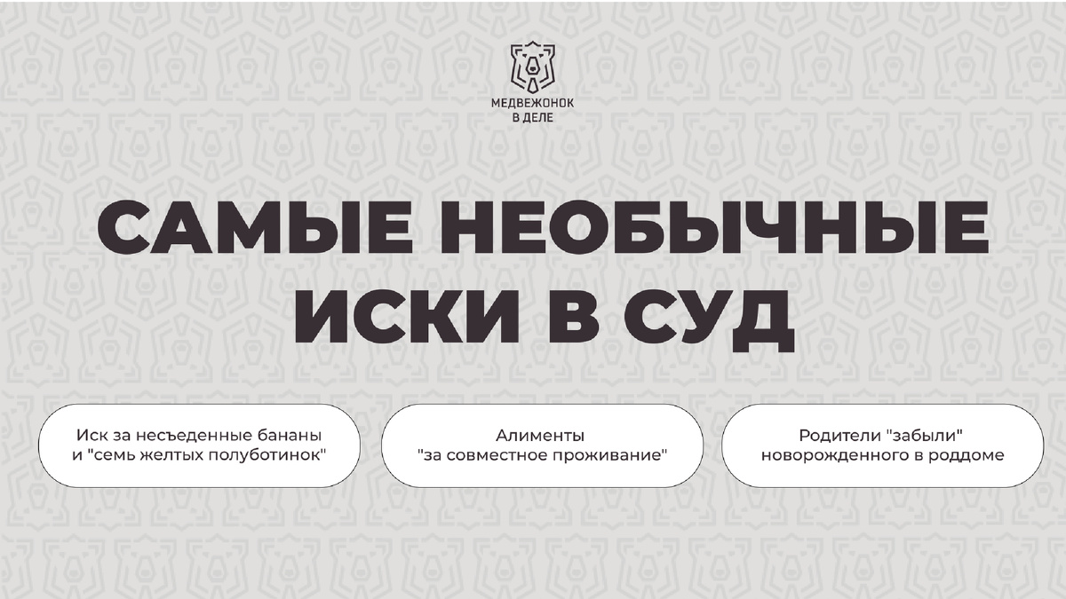 Мы собрали несколько реальных, хорошо известных кейсов: иск за бананы и «семь желтых полуботинков», случай с забытым в роддоме новорождённым и споры, связанные с темой алиментов на совместно проживающего супруга. Эти дела реально существовали, неоднократно описывались в СМИ и демонстрируют, как эмоциональные и импульсивные решения легко превращаются в судебные иски — часто без реальных перспектив на успех.