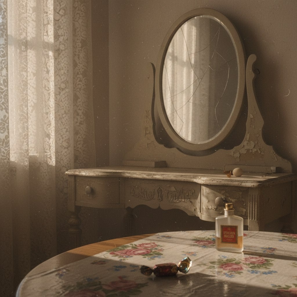 Когда разбирали квартиру, мне достался её трюмо. Старое, с треснувшим зеркалом, но безумно красивое — резное, ещё дореволюционное. Мама хотела выбросить, но я забрал себе в новую квартиру. Вместе с трюмо переехал и маленький пузырёк от духов «Красная Москва». Пустой. Я просто поставил его на место для красоты, как память.