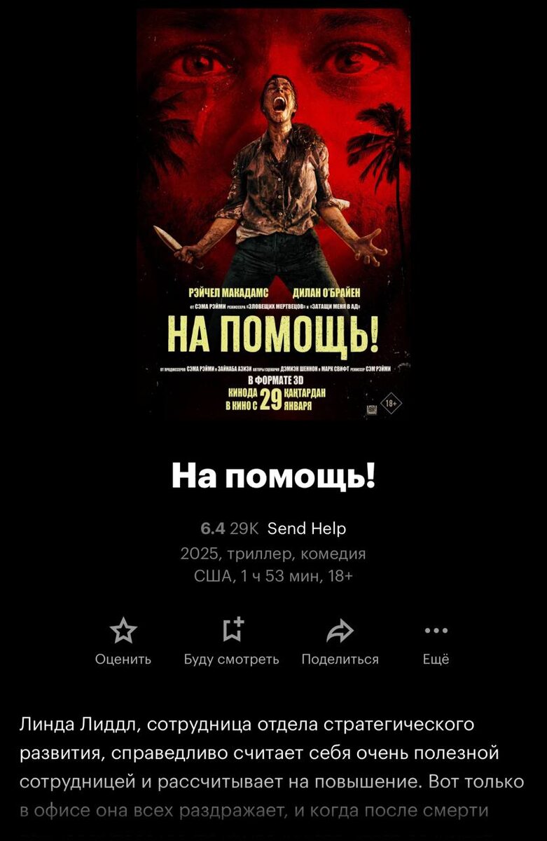 ! Новый фильм Сэма Рейми — На помощь. Сплошное удовольствие! Приключение, выживание, триллер, комедия, а местами ДОКУМЕНТАЛКА, настолько некоторые персонажи себя жизненно ведут, меня порой скукоживало от отвращения 😁 2 часа балдежа, смотреть всем и обязательно! 8/10 (редкий случай, когда Финаргот трезво оценил, а не навалил кринжа)