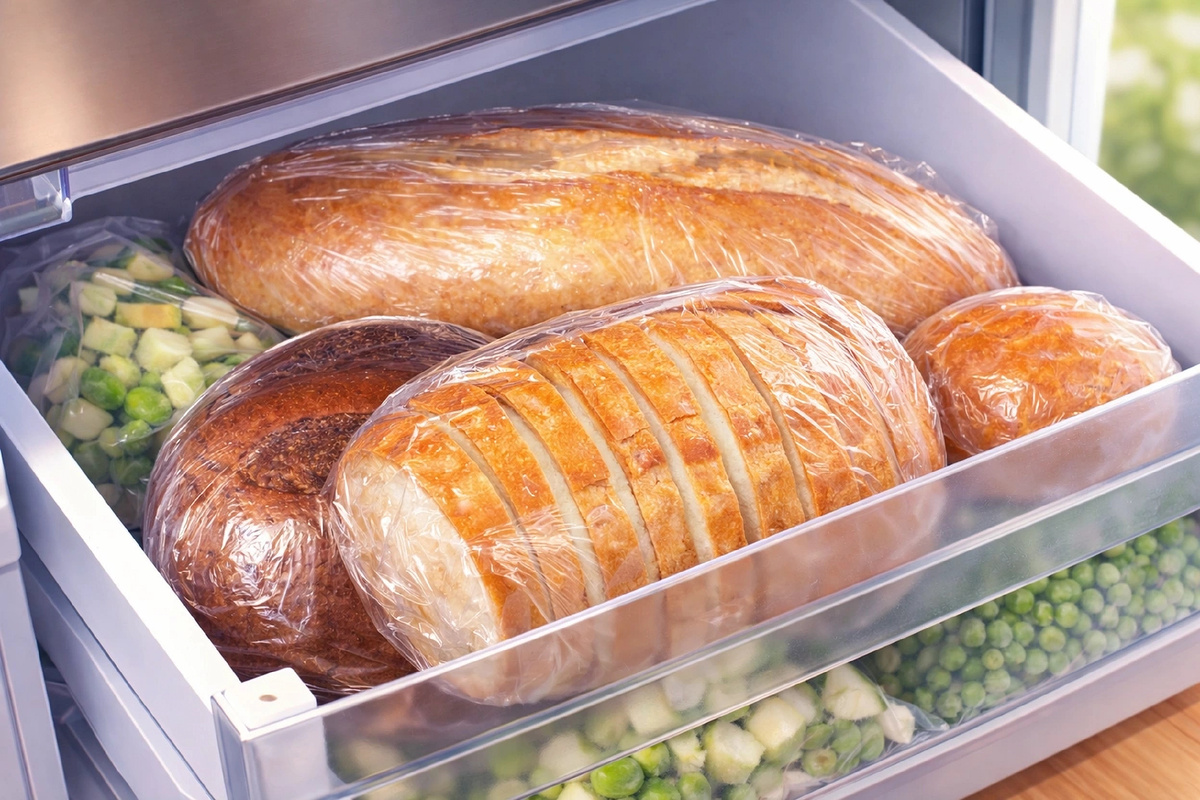 Купили тёплый, хрустящий батон, а через день он уже похож на кирпич. Или того хуже — в хлебнице заводится плесень, и продукт летит в мусорное ведро. Знаете это чувство, когда только вчера принесли ароматный багет, а сегодня он царапает нёбо, и приходится спасать его тостами с маслом или пускать на сухари. Мы привыкли считать, что холод хлебу вредит, делает его черствым. Отчасти так и есть. В холодильнике хлеб действительно черствеет быстрее, чем при комнатной температуре. Зато плесень появляется медленнее. А вот морозилка решает обе задачи: и свежесть бережёт надолго, и структуру крахмала меняет — причём так, что это может влиять на уровень сахара после еды. Если нужен долгий срок хранения, морозилка — лучший вариант. Разберёмся, как обычная смена температуры перестраивает крахмал и почему это уменьшает скачки глюкозы в крови. Когда хлеб только из печи, его мякиш мягкий и воздушный. После выпечки крахмал набухает и становится максимально доступным для пищеварительных ферментов. Результ