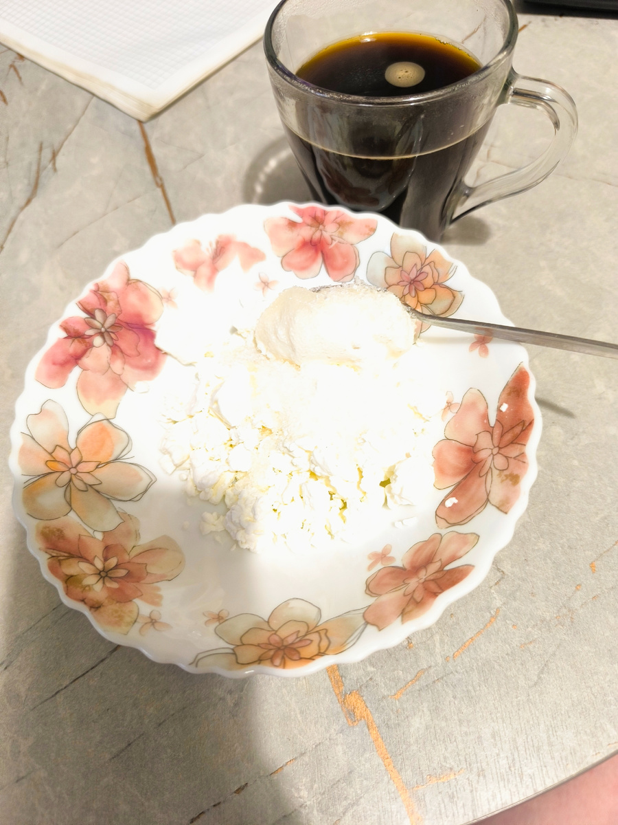 Кофе. Творог со сметаной и сахаром .Тост из цельнозернового хлеба.