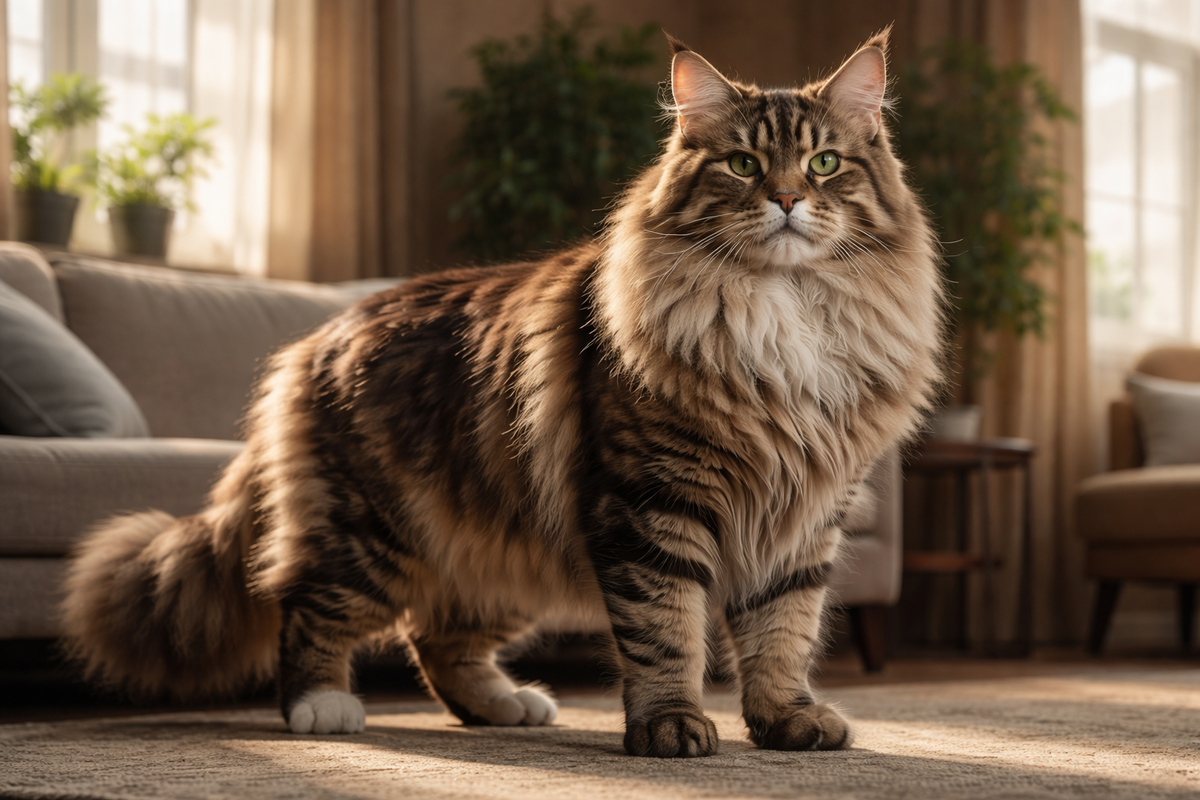 Мейн-куны часто производят впечатление «гигантов» среди домашних кошек. Многие владельцы впервые сталкиваются с этой породой и задаются вопросом: откуда такие размеры и норма ли это вообще.